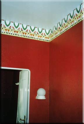 Rotes Stucco - Bad mit "Ethno" - Bordüre